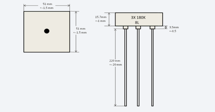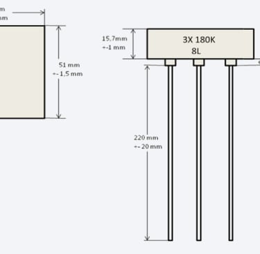 Os elementos resistivos são montados sobre cerâmica de alta qualidade e, em suas extremidades, são aplicadas tampas metálicas, às quais são soldados fios de cobre com isolamento de silicone, com comprimento definido de acordo com as especificações de cada cliente. O conjunto é encapsulado em cerâmica de alta isolação e selado com resina de silicone, garantindo elevada rigidez dielétrica, excelente estabilidade térmica e proteção completa contra influências externas e solventes agressivos.