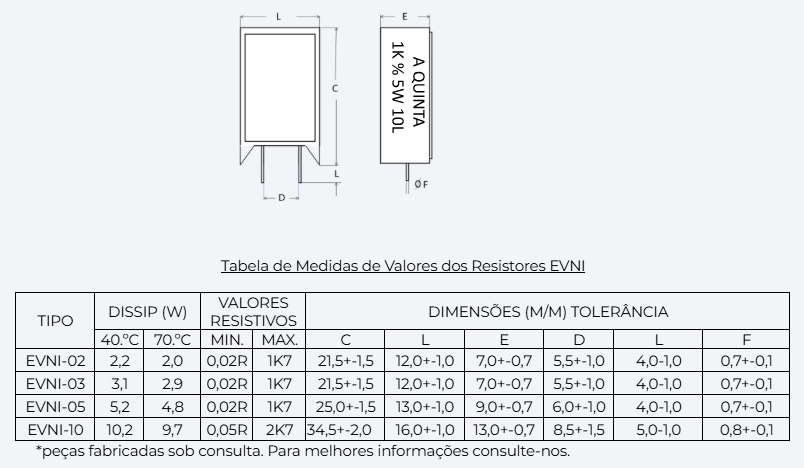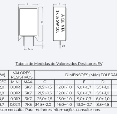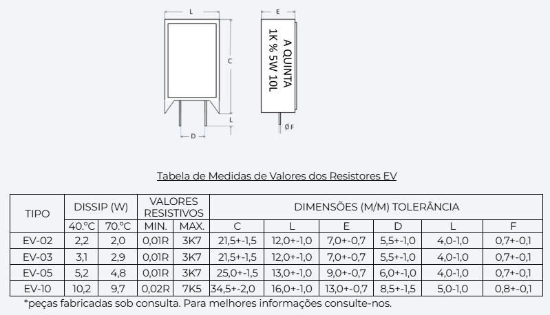 EV - Os resistores Encapsulados Verticais, são fabricados com fios de ligas especiais.
