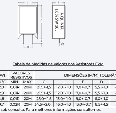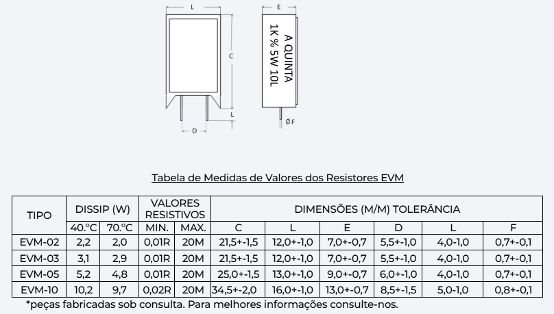 EVM - Os resistores Encapsulados Verticais são fabricados em metal filme.