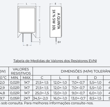 EVNI - Os resistores Encapsulados Verticais Não Indutivo são fabricados com fios de ligas especiais e enrolados de forma que não gerem campo magnético ou elétrico ao redor do resistor.
