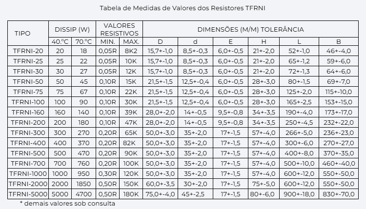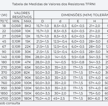 TFRNI - resistores Tubulares Fixos Radiais Não Indutivos, fabricados com fios de ligas especiais e enrolados de forma a não gerar campo magnético ou elétrico ao redor do resistor.
