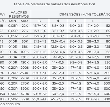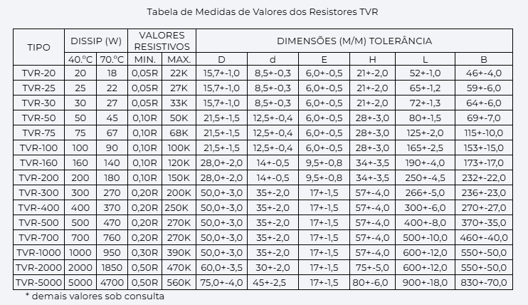 TVR - resistores Tubulares Fixos Radiais fabricados com fios e ligas especiais.
