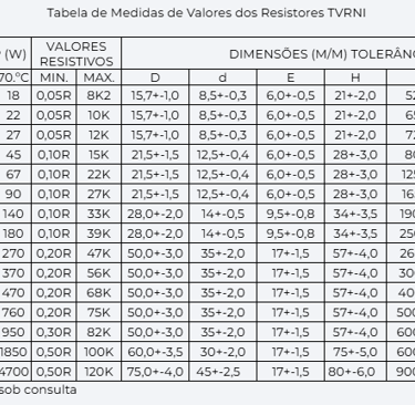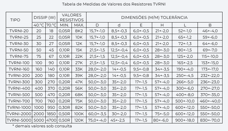 TVRNI - resistores Tubulares Fixos Radiais Não Indutivos, fabricados com fios de ligas especiais e enrolados de forma a não gerar campo magnético ou elétrico ao redor do resistor.